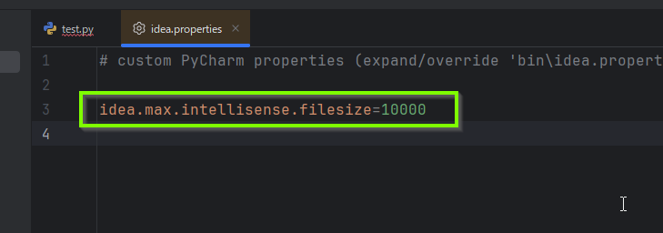 これはPycharmの環境設定の影響であり、大きすぎるインテリセンス用のファイルに対してインデックス付けを放棄してしまうのが原因である。