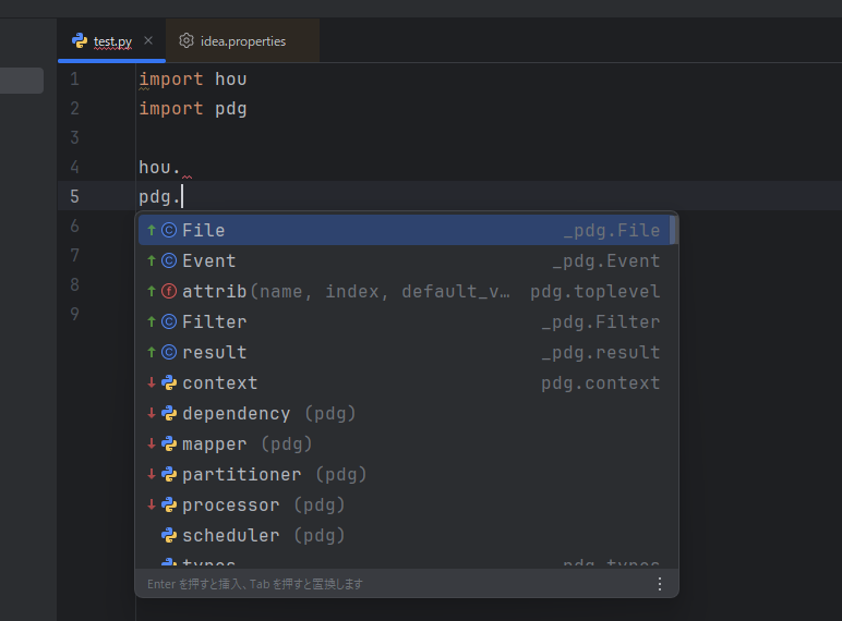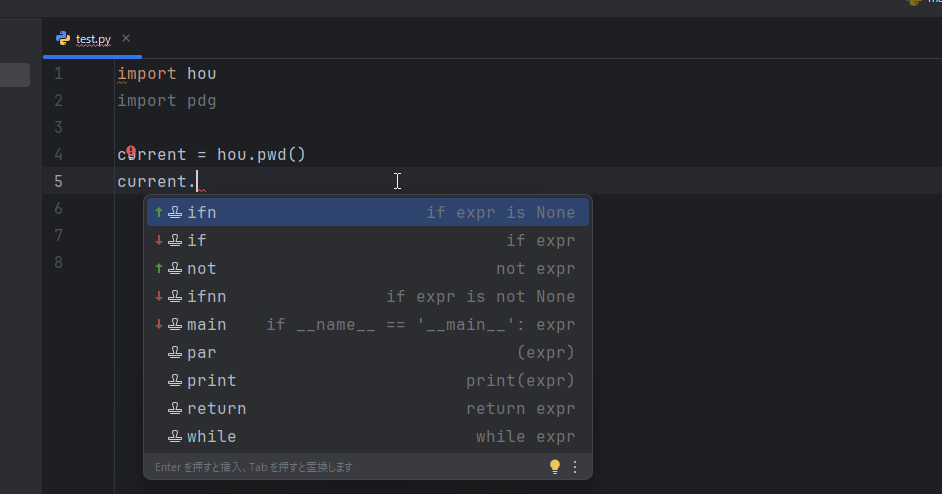 しかし、Pycharm環境ではデフォルトの設定ではパスを通しただけではhouパッケージのオートコンプリートは有効にならない。
