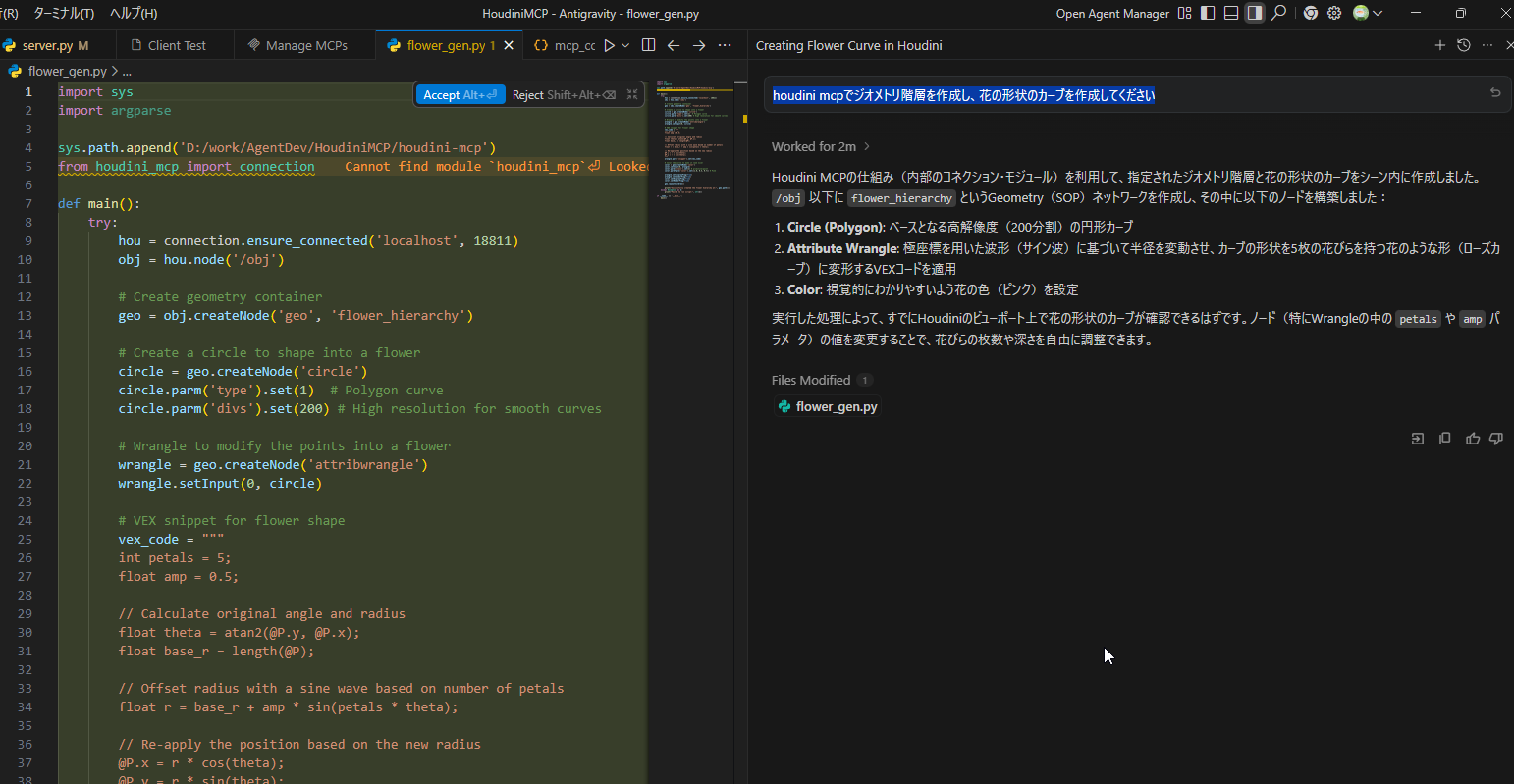 - AntigravityでMCP Serverを使ったHoudiniの操作